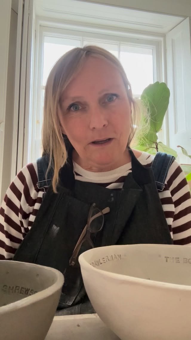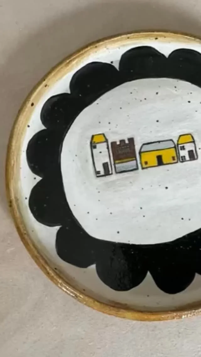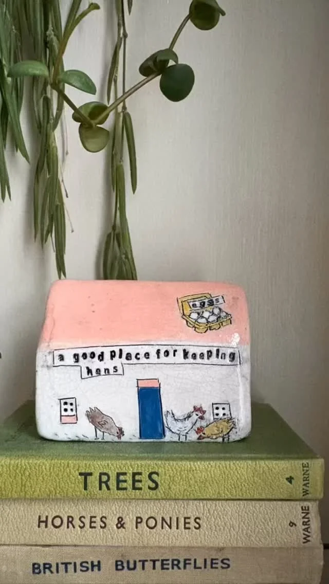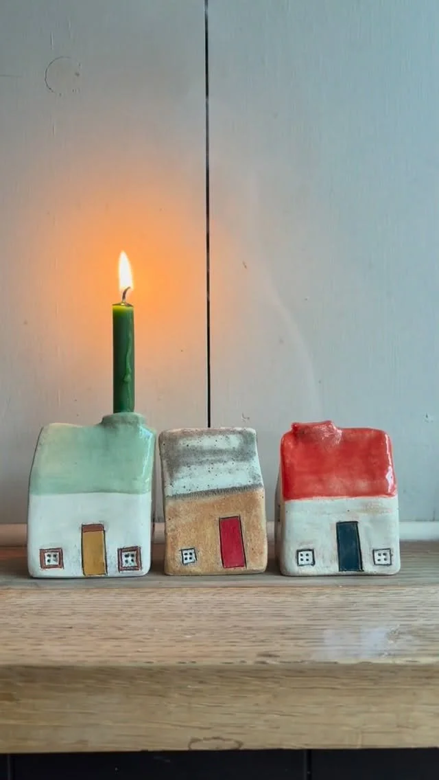 We have two dogs who seem to constantly need a walk and when you have small children it isn’t always easy to entice them out in all weathers…… So when my daughter was small we used to walk the dogs along Castle Street with its brightly coloured timber framed houses and impossible leanings. We would stroll along and make up stories about the people of Castle Street and what they were doing in their houses……..Then I began making houses in clay and telling the stories of the people who lived in them on my Instagram page…. @amandabanhamceramics